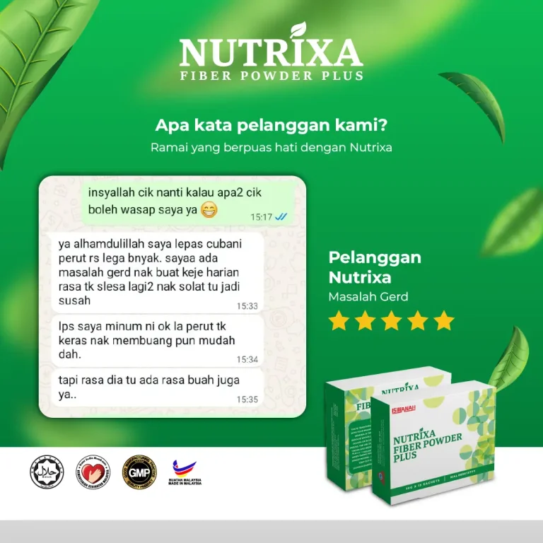 Di cadangkan untuk mengambil combo 2 KOTAK Nutrixa Fiber untuk kesan yang lebih optimum dan pantas.